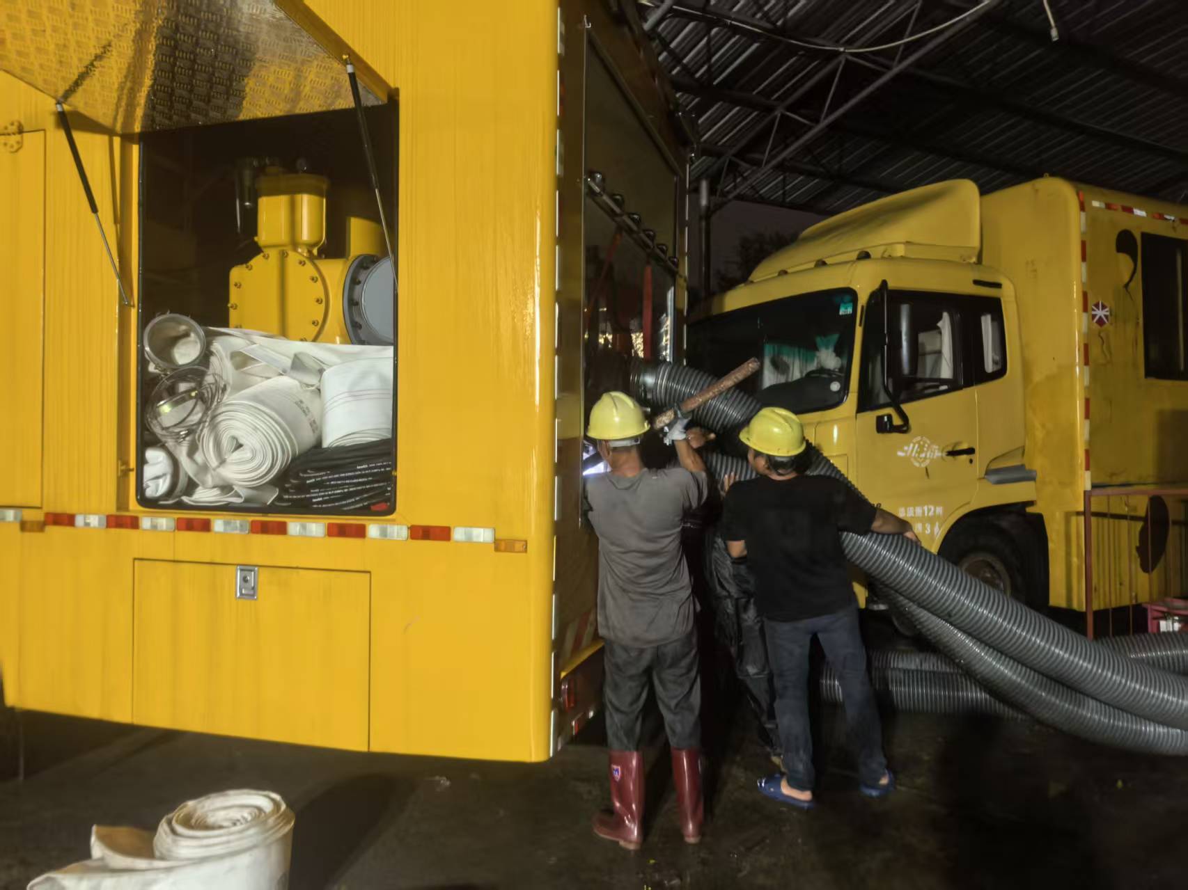 在接到援助崇左的紧急任务后,柳州市住宅城乡建设局3000型移动抽排设备救援队第一时刻呼应,放弃与家人聚会,救援队负责人罗坤敏捷招集小组成员星夜兼程赶赴崇左。