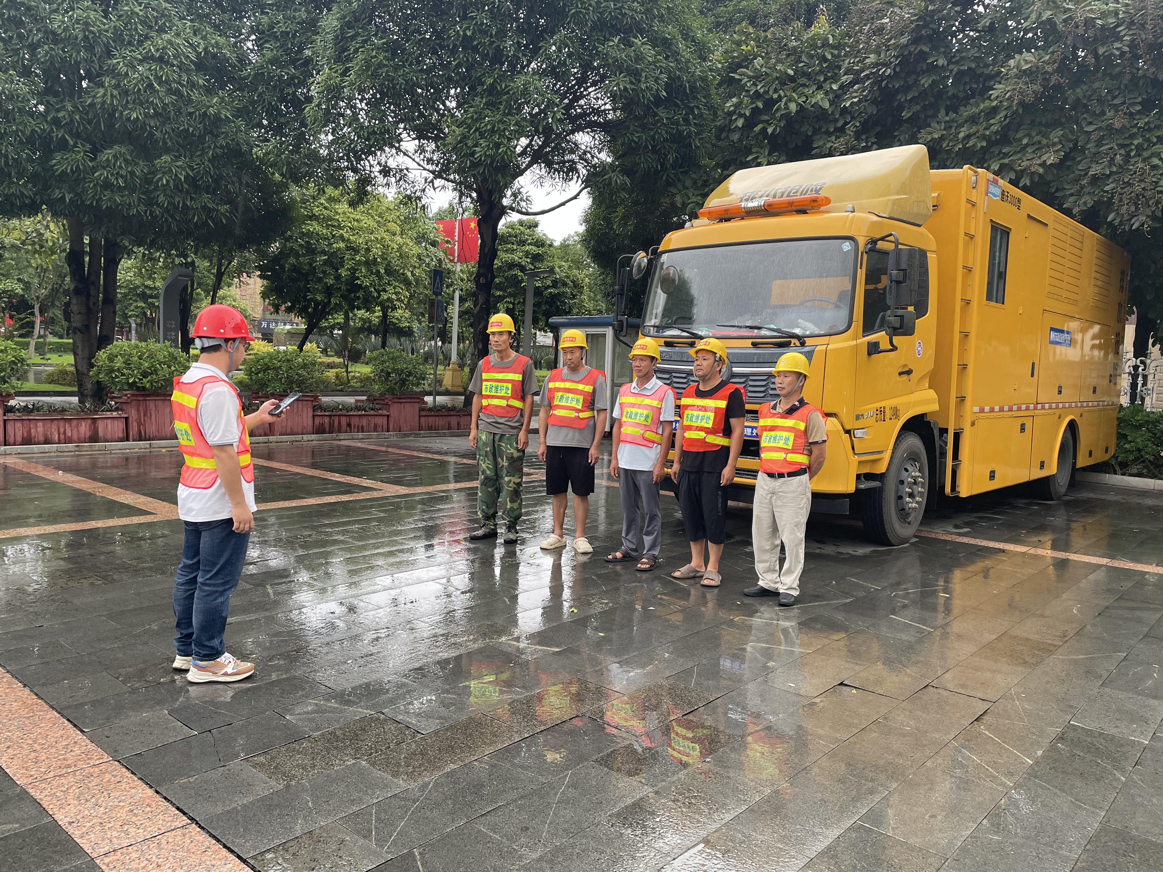 柳州市住建局3000型移动抽排设备救援队负责人罗坤带领救援队全体成员驱车赴崇左市受灾一线